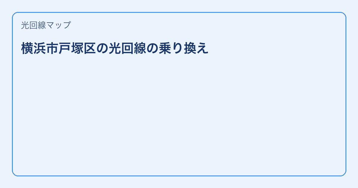 横浜市戸塚区で光回線を検討中の方へ。この記事では横浜市戸塚区で判断しやすいように手順と金額ポイントを整理しています。