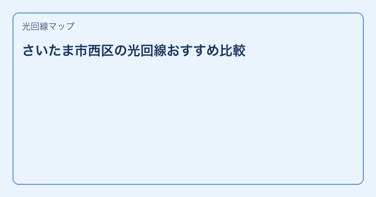 さいたま市西区で光回線を検討中の方へ。この記事ではさいたま市西区で判断しやすいように手順と金額ポイントを整理しています。