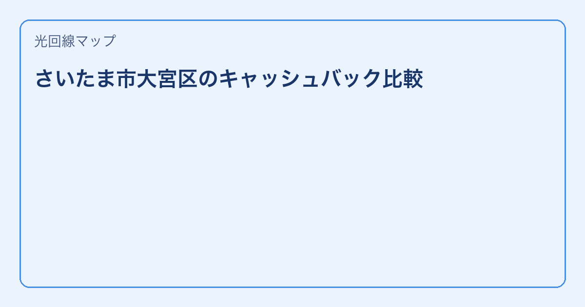 さいたま市大宮区で光回線を検討中の方へ。この記事ではさいたま市大宮区で判断しやすいように手順と金額ポイントを整理しています。 この記事のハイライト さいたま市大宮区で失敗しない手順を提示 料金・工事費を比較 確認すべき項 … 続きを読む