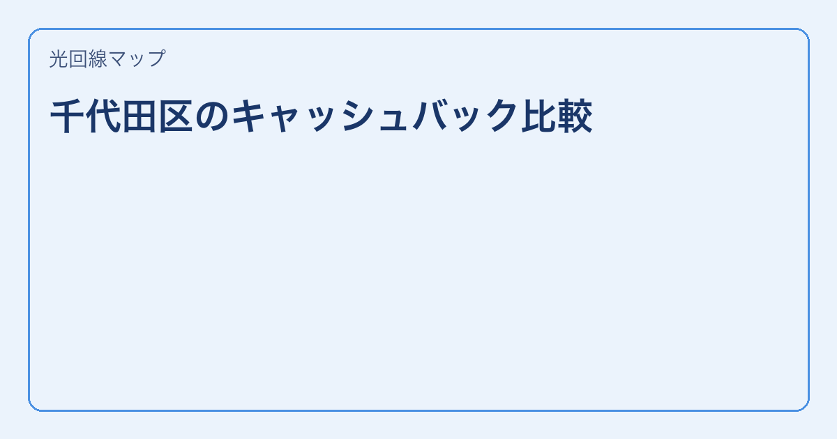 千代田区で光回線のキャッシュバック特典を比較したい方へ。 この記事では、各社のキャッシュバック金額・受取条件・注意点を一覧で整理しています。 この記事のハイライト 各社のキャッシュバック金額を一覧比較 受取条件と注意点を … 続きを読む