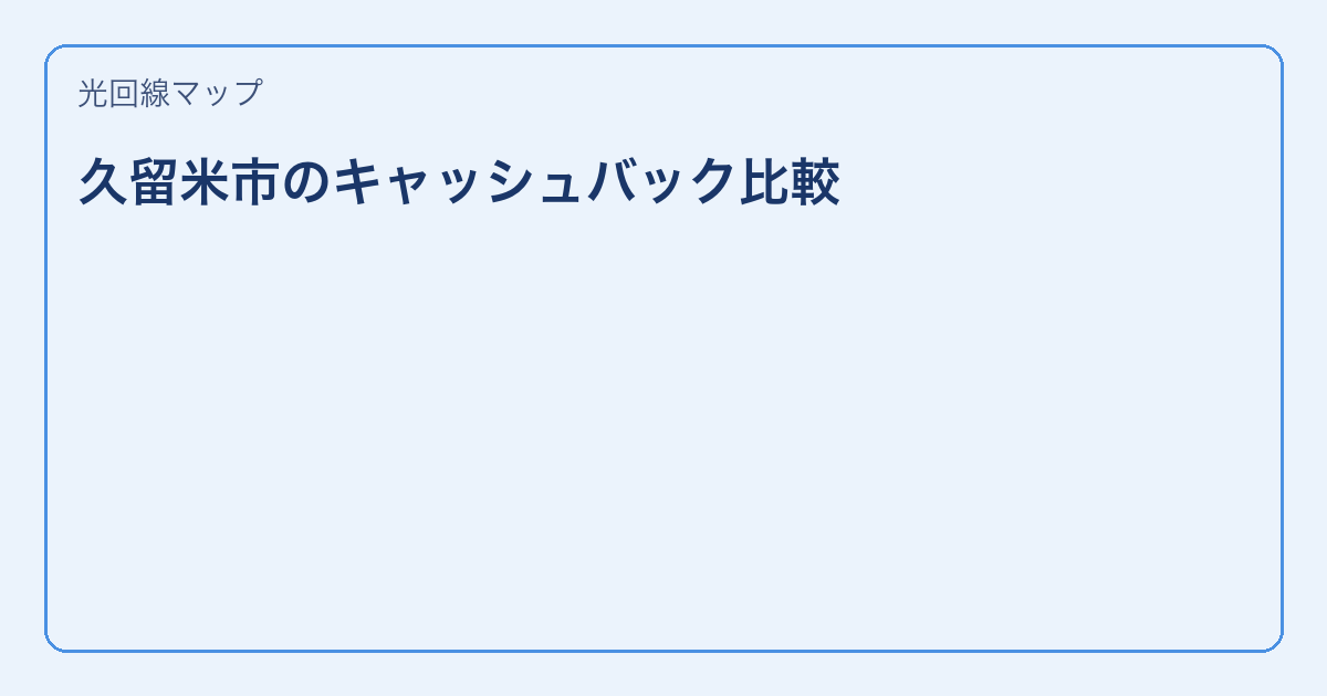 久留米市で光回線を検討中の方へ。この記事では久留米市で判断しやすいように具体的な手順と金額ポイントを整理しています。 この記事のハイライト 久留米市で失敗しない手順を提示 料金・工事費を比較 確認すべき項目を整理 久留米 … 続きを読む