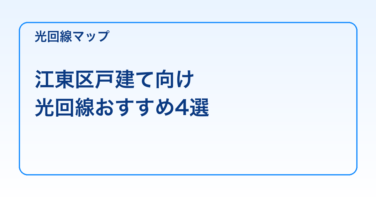江東区で光回線選びに失敗したくない方へ。 この記事では、東京都江東区で実際に判断しやすいように、具体的な手順と金額ポイントを先に整理しています。 この記事のハイライト 江東区戸建てで工事費と日程を最適化する方法 屋外引き … 続きを読む