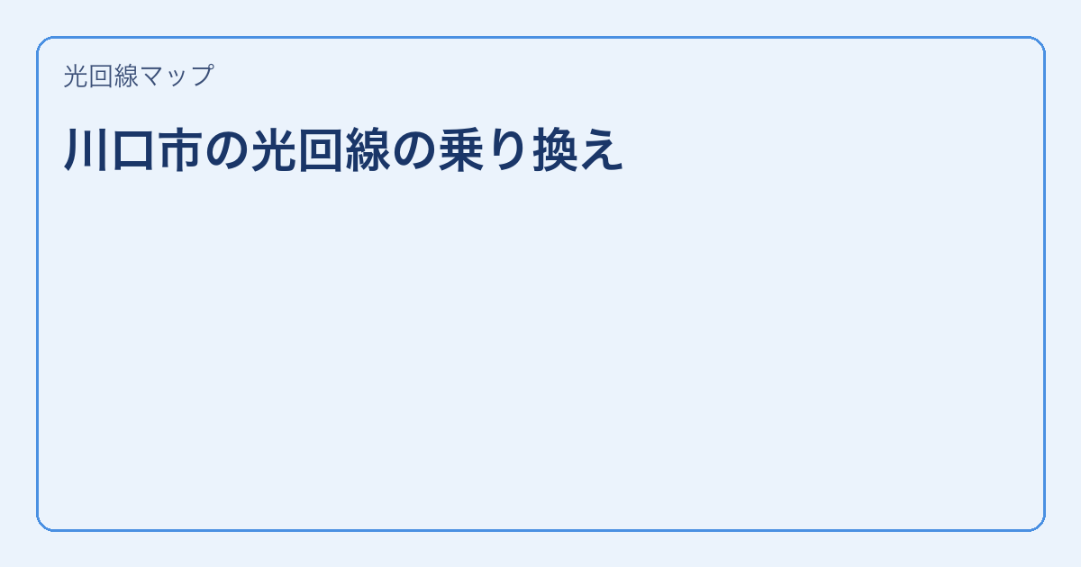 川口市で光回線を検討中の方へ。この記事では、川口市で判断しやすいように具体的な手順と金額ポイントを整理しています。 この記事のハイライト 川口市で失敗しない手順を提示 料金・工事費を比較 確認すべき項目を整理 川口市の特 … 続きを読む