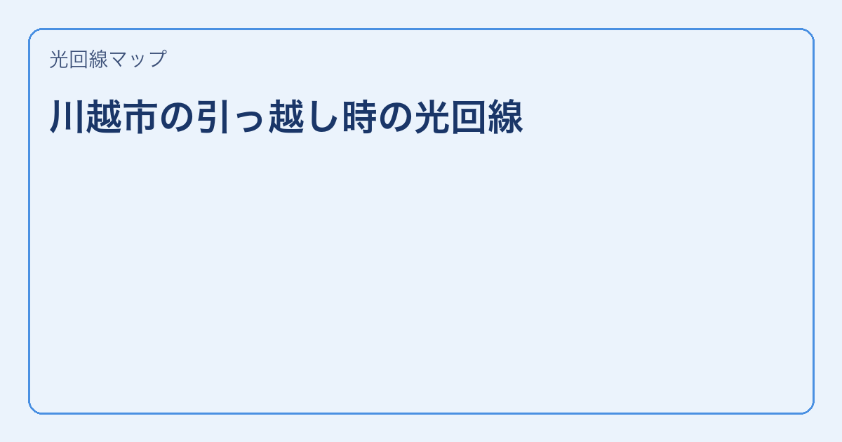 川越市で光回線を検討中の方へ。この記事では、川越市で判断しやすいように具体的な手順と金額ポイントを整理しています。 この記事のハイライト 川越市で失敗しない手順を提示 料金・工事費を比較 確認すべき項目を整理 川越市の特 … 続きを読む