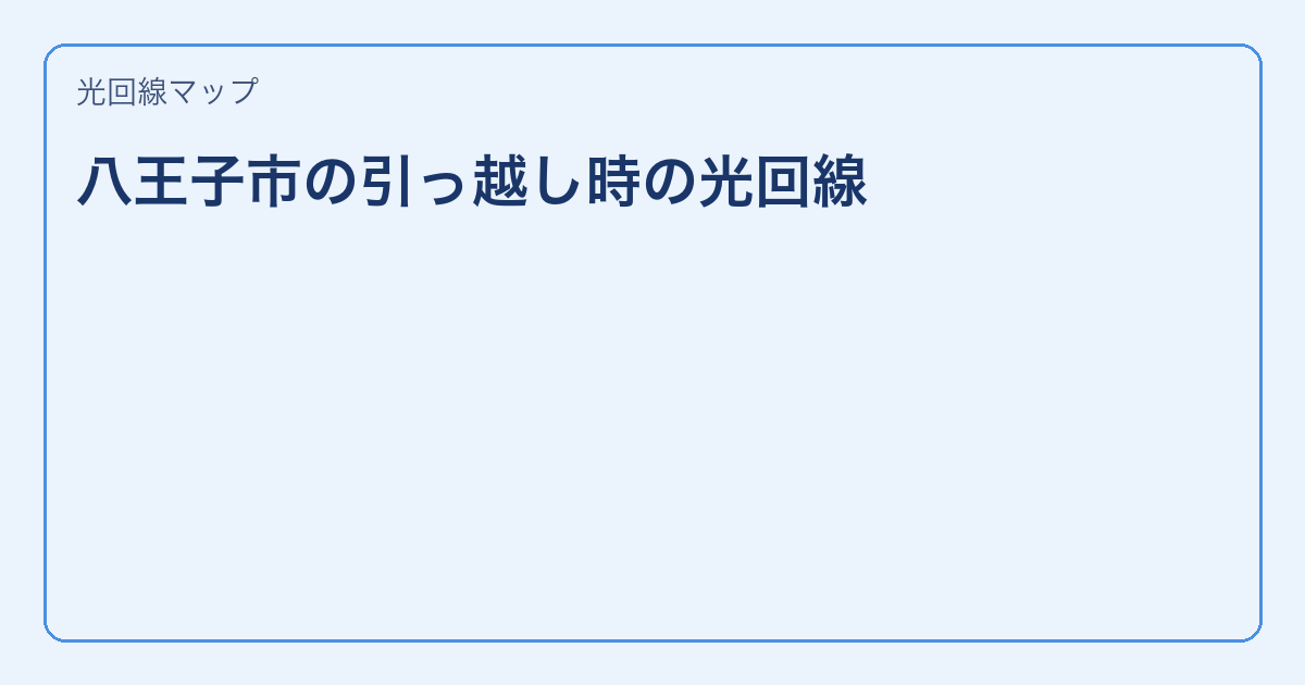 八王子市で光回線を検討中の方へ。この記事では、八王子市で判断しやすいように具体的な手順と金額ポイントを整理しています。 この記事のハイライト 八王子市で失敗しない手順を提示 料金・工事費を比較 確認すべき項目を整理 八王 … 続きを読む
