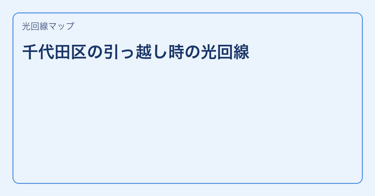 千代田区への引っ越しで光回線の手続きを検討中の方へ。 この記事では、違約金を抑えて損しない手順と、引っ越し時に確認すべきポイントを整理しています。 この記事のハイライト 引っ越し1ヶ月前から始める手続きの流れ 違約金を最 … 続きを読む