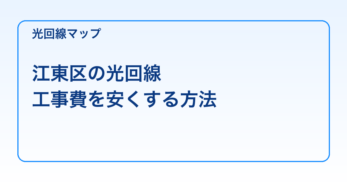 江東区で光回線選びに失敗したくない方へ。 この記事では、東京都江東区で実際に判断しやすいように、具体的な手順と金額ポイントを先に整理しています。 この記事のハイライト 江東区で失敗しない回線選びの手順を先に提示 料金・開 … 続きを読む